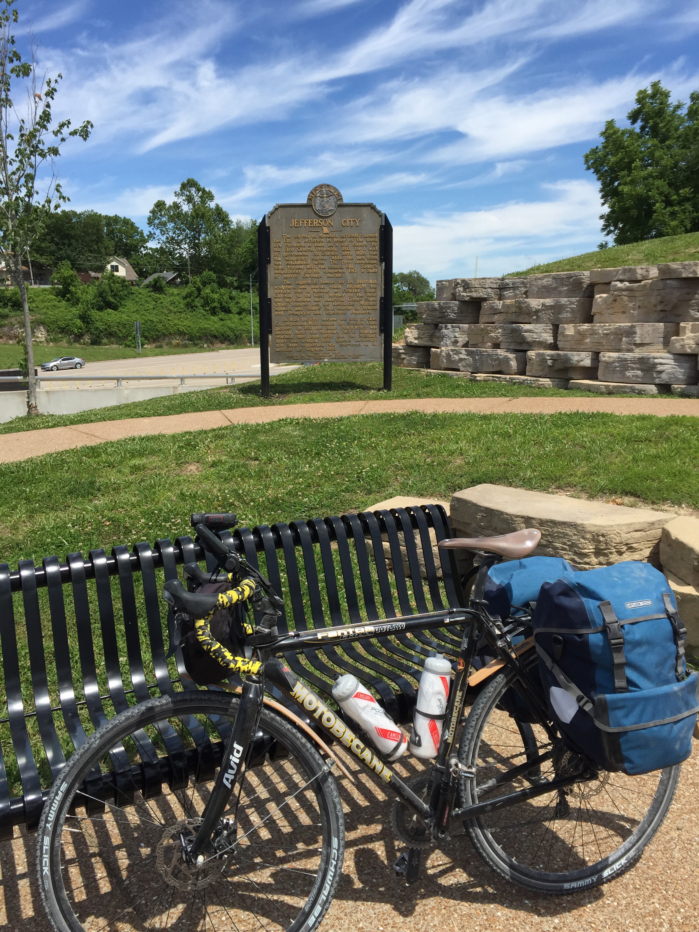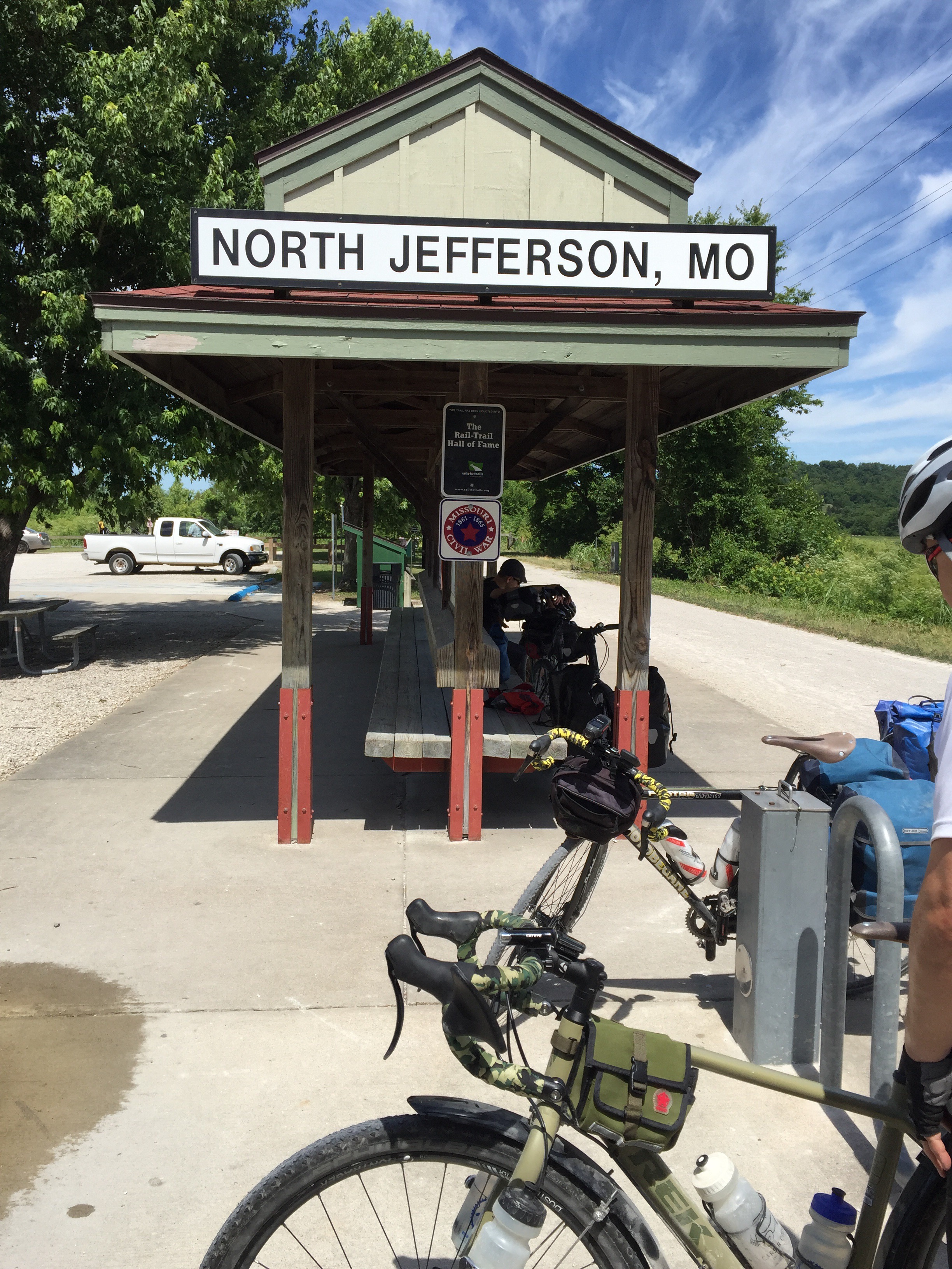 After many miles of forest and farmland, we finally arrived at North Jefferson – a trailhead on the northern side of the Missouri River. Jefferson City, the state Capitol, is 3 miles south, across a bridge over the river.