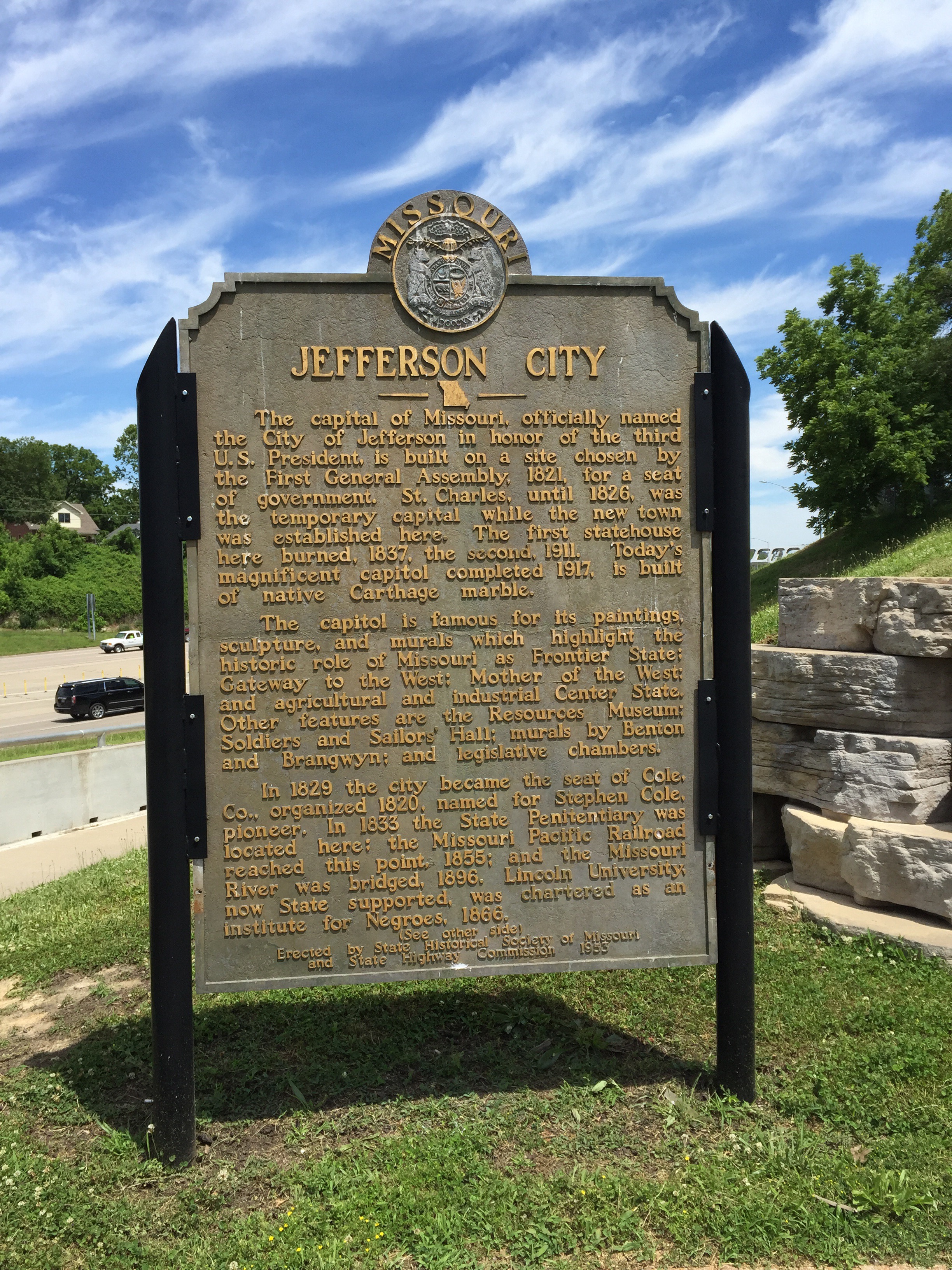 After finishing our breakfast, our next stop was to make our way steadily westbound, heading for Jefferson City. We passed through several tiny towns and just a few trailheads. This part of the trail continues to be pretty sparse. The scenery is pretty, but not much else to see along here. Even the small towns are mostly closed up without services.