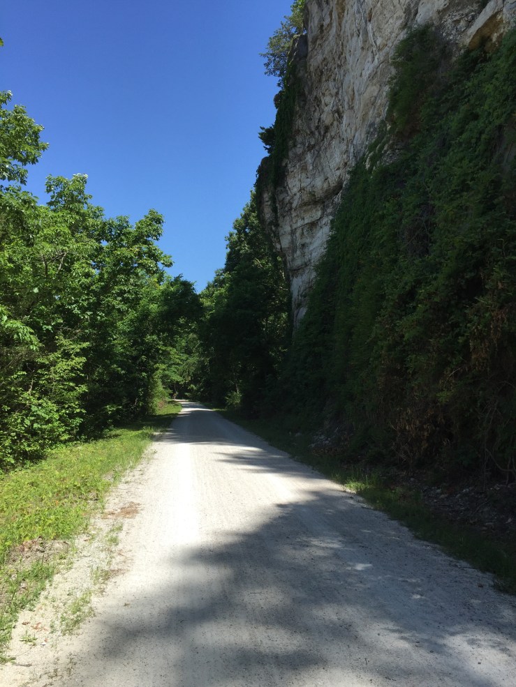 As we got closer to Hartsburg, you begin to see bluffs: cliffs of rock that are nearly straight up and fairly tall. It is really hard to take a picture of them to give you any idea of scale.
