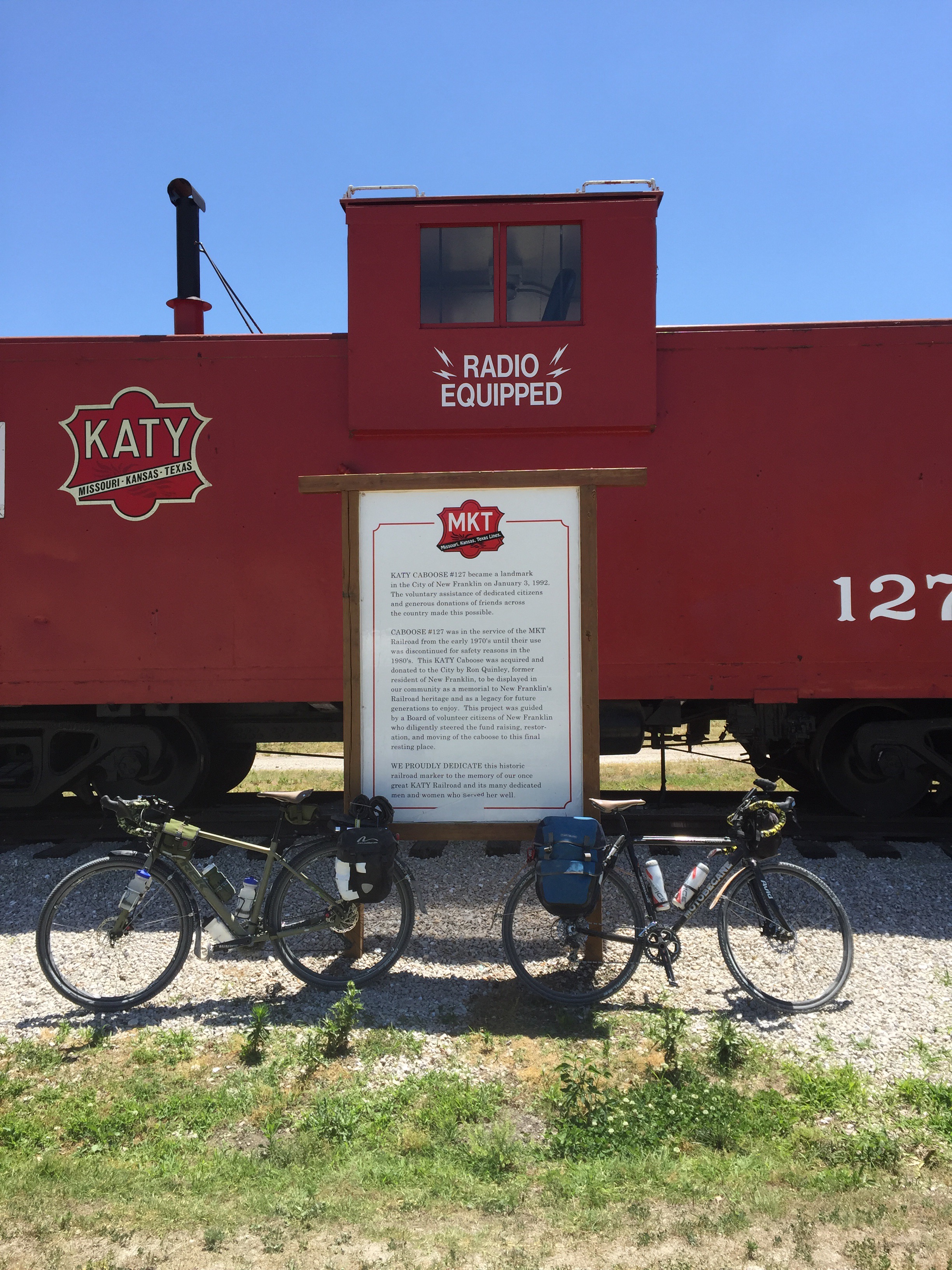 Tomorrow is our longest day of the tour at 73 miles. On paved surface, this wouldn’t be too bad, but this surface is slow and the temps are supposed to be high. So we’ll be up and out early, chugging along down the trail. Assuming all goes well, we will complete the full length and reach the end of the Katy by late afternoon tomorrow!