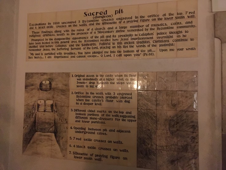 So eventually you go down a staircase into a cave below the church. At the bottom, you find two important places: the place of Jesus’ birth, and the place where the manger was located. In the picture below, you can see the star with a large hole in it. Below the slab of marble and through the hole, you can touch the rock where Jesus was born. If you place religious articles against it, they become third-class relics. So I have some items coming home that are now third-class relics.