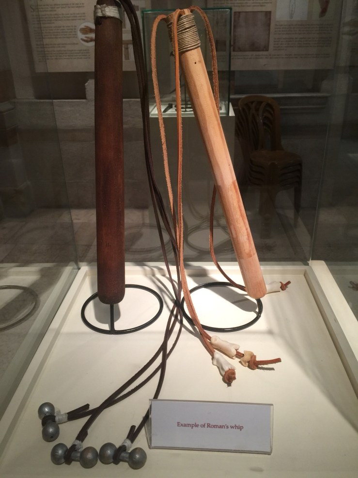 In the picture below, he is holding a “tear jar”. The women of Roman times would collect their tears into these jars and send them off with their husbands when they went for war. These were considered more precious than perfumes. They were a sign of the love from the woman to her husband. If the husband were to die in battle, the tears would be buried with him.