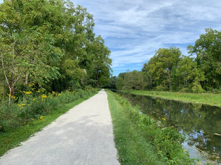 The towpath ends unceremoniously at Harvard road. The last time I was here, there was a very small trailhead. It was under reconstruction when I arrived yesterday and the signage was gone. I assume they’ll bring it back when the trailhead is finished. Here’s about where the sign used to be: