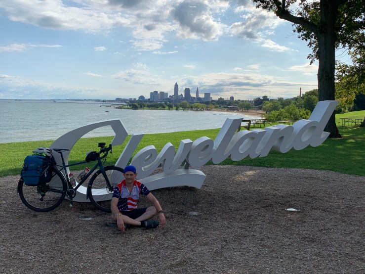 Here I am at Lake Erie! It’s official – I’ve crossed the state, dipping my tires in both the Ohio River in Cincinnati and Lake Erie in Cleveland.