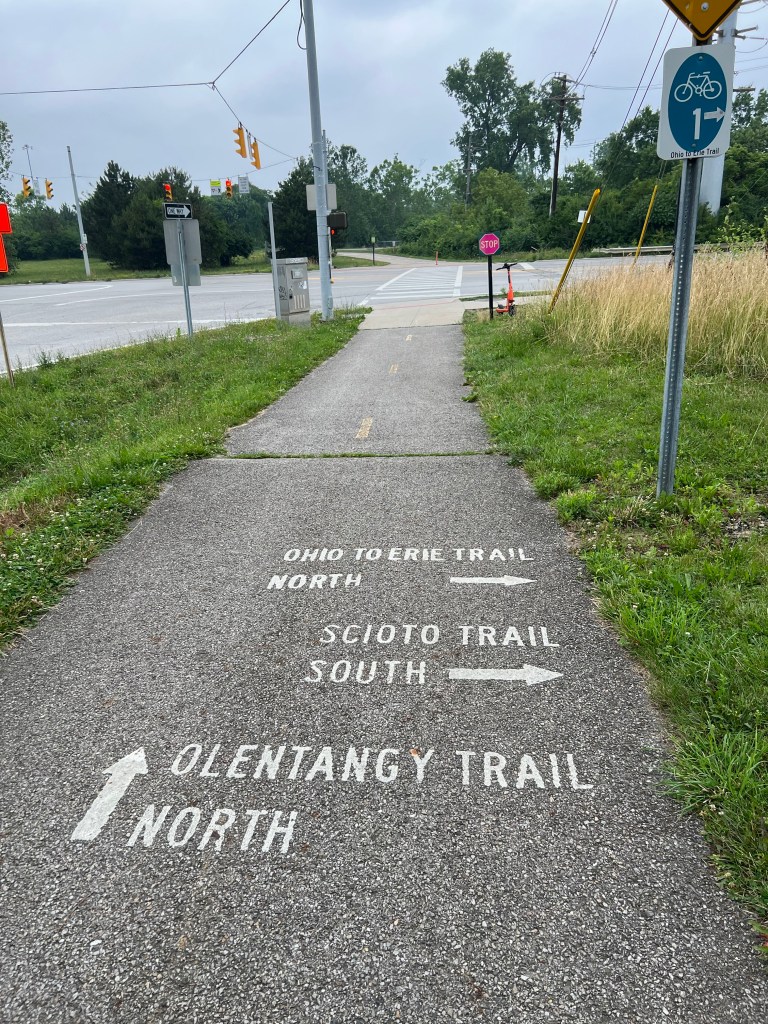Ohio has a great set of trail networks. People are surprised to learn that you can ride from Cincinnati to Cleveland on paved bike trails for most of the journey. See the Ohio To Erie trail web site for more information. On this trip, aside from a little bit of on-road bike lanes in Cincinnati, one detour (see below), and maybe 5-6 miles total of connector roads in the little farm towns, I was on paved bike trails from the time we crossed into Ohio until I reached the main road to the Josephinum north of Columbus.