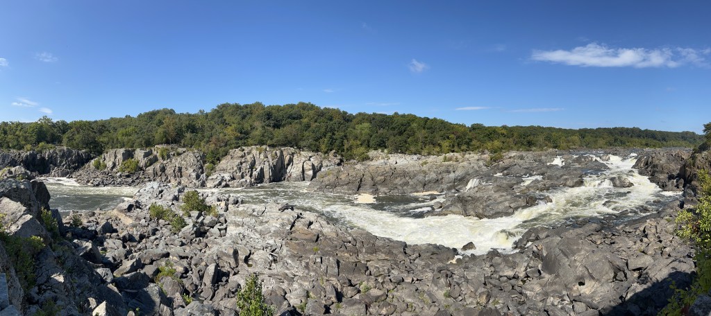 Our second long stop of the day was at the Great Falls overlook, conveniently located about 2/3 of our distance. The Potomac changes from a calm looking river to a massive set of falls in this area. We parked our bikes and walked out the boardwalk to take a look. I haven’t walked all the way to the main falls before and, wow, just wow! It is not only powerful, but very beautiful.