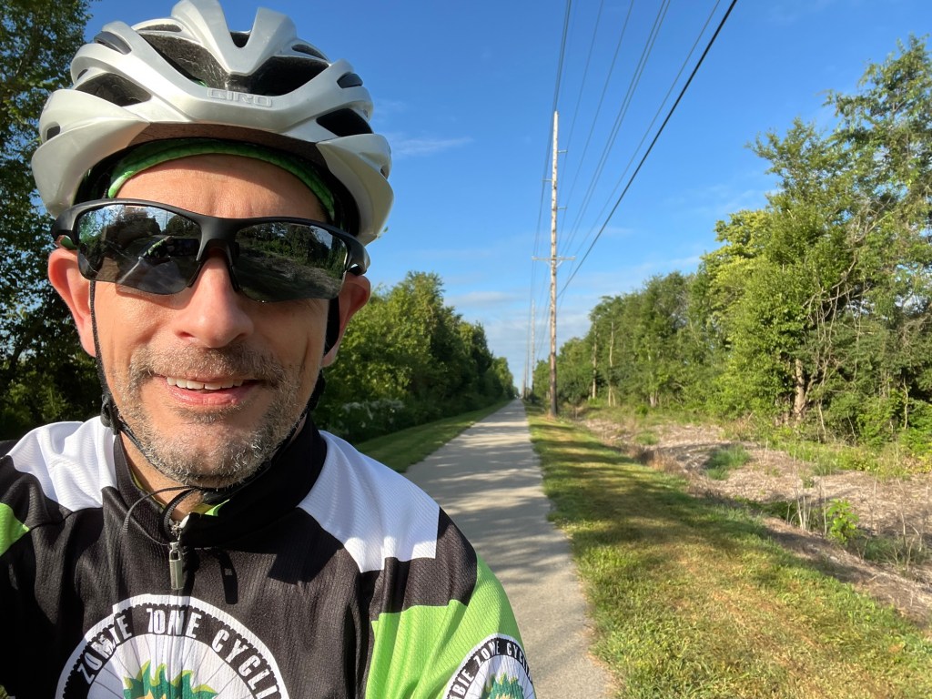 The trip today was nearly all on rail-trails. There are just a couple of miles of connectors when you reach the towns along the way and the last mile or so in Columbus to get to the hotel. This kind of riding is very different than our normal Kentucky riding or the first two days of this tour. The paths are flat and quiet. No cars to worry about, no hills to climb. I really enjoy these kinds of trails, but I also like the variety of rolling hills to mix up the workout for the legs.