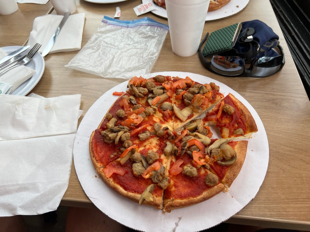 A few days ago we discussed each of us having a food bingo card. Omelettes, pasta, pizza, and so on. Yesterday, JB said that his bingo card had ribs left to fill. So when we arrived at the hotel, I asked the bellhop if there were any good places to get ribs nearby. He offered up “Mabel’s BBQ”. We got cleaned up and wandered over for an early dinner. It did not disappoint! My regular diet resumes first thing tomorrow – I won’t be burning an extra 2,000 calories every day.