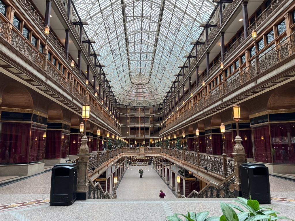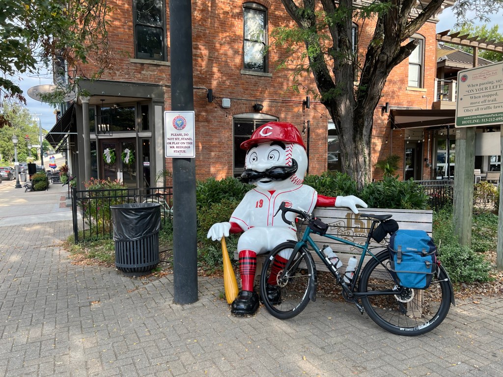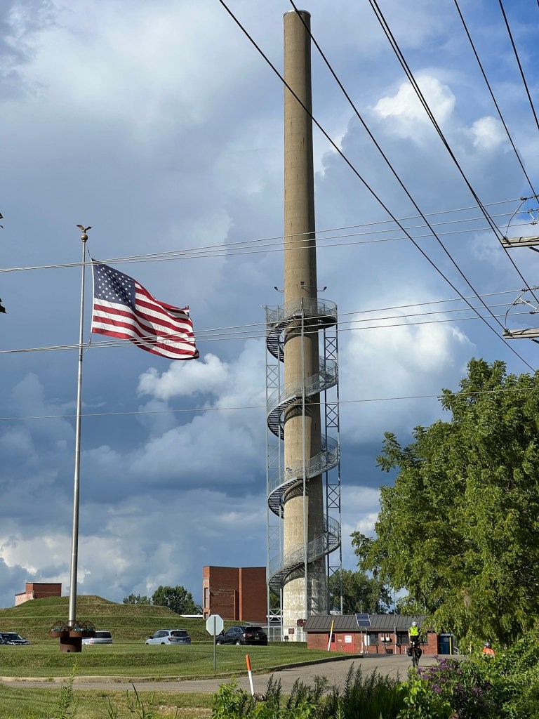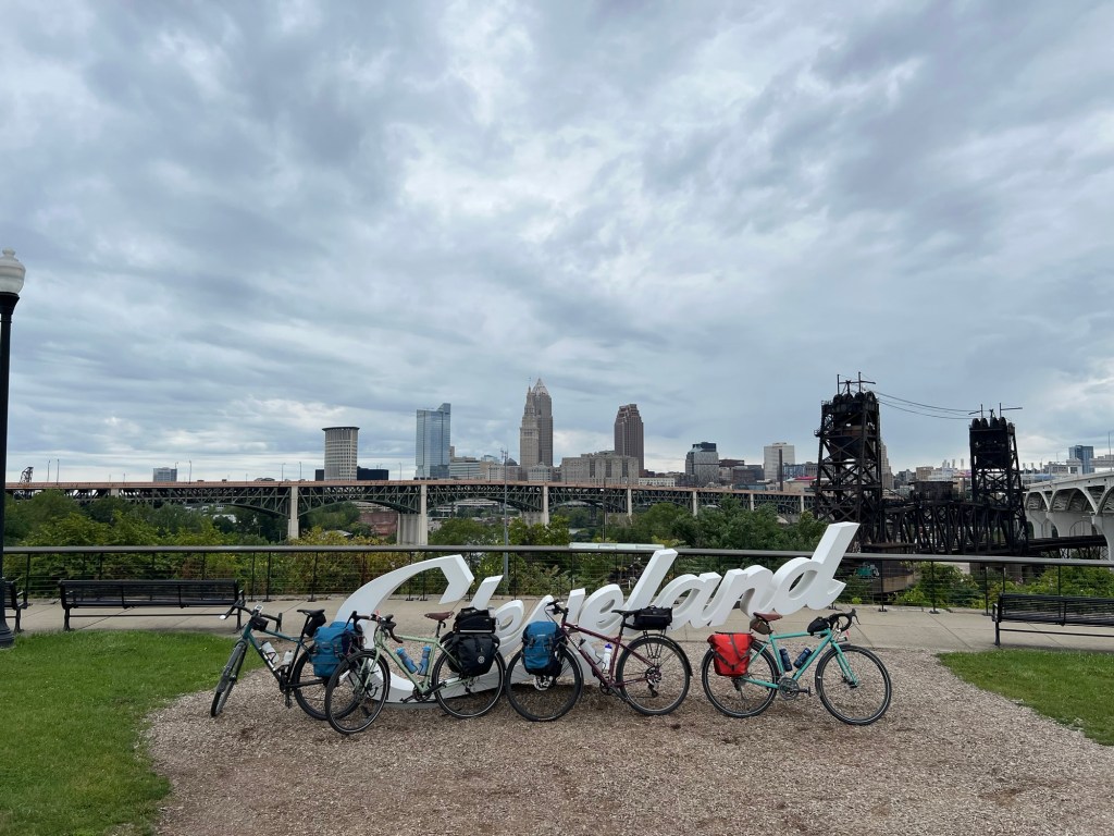 As we continued our journey, we found ourselves on the south side of Cleveland. There have been some new bike paths added since I last cycled here in 2019. We took this new route and it led us to the Edgewater park with very little time on city roads. We stopped by one of the Cleveland script signs on the south side of downtown before continuing on.