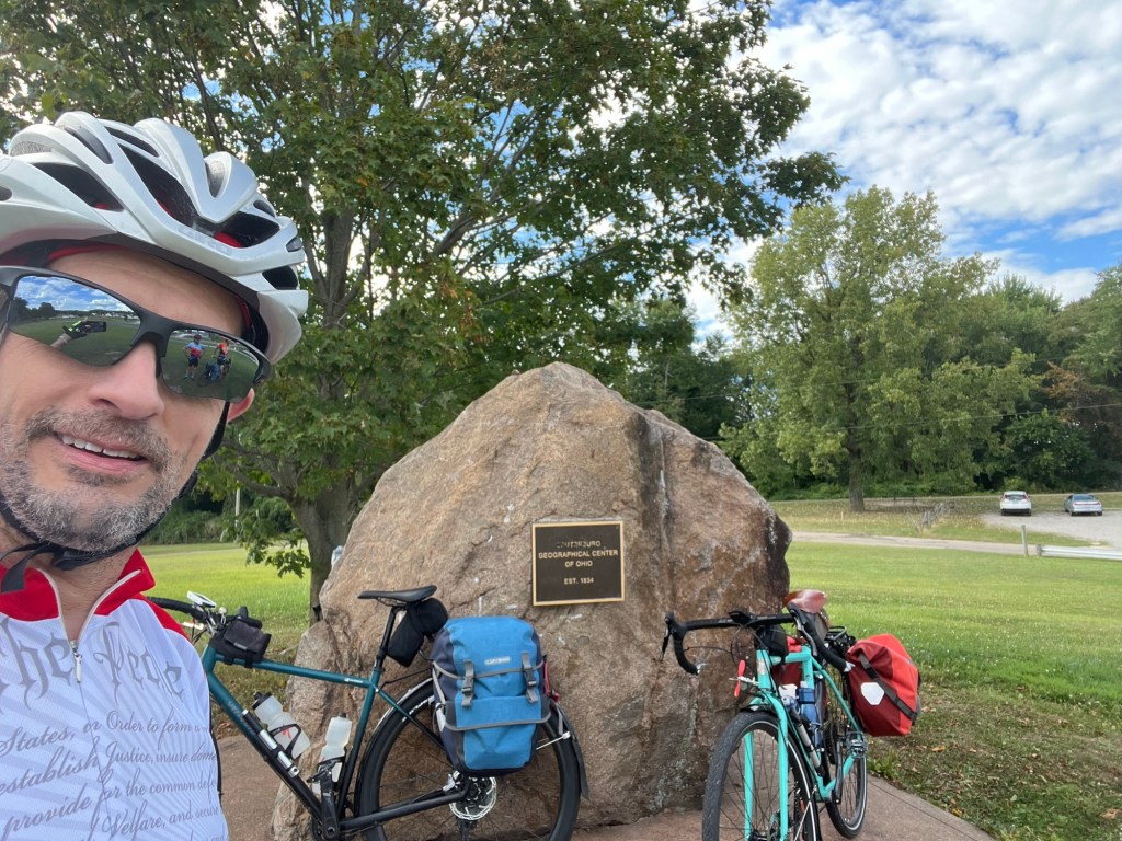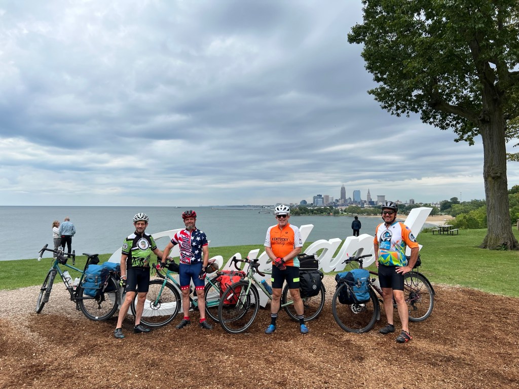 Edgewater Park is about 3.5 miles west of downtown along the lakefront. We rolled in and dipped our tires in Lake Erie, celebrating the completion of the journey across the state. We finished by getting pictures at the Cleveland script sign that overlooks the beach.